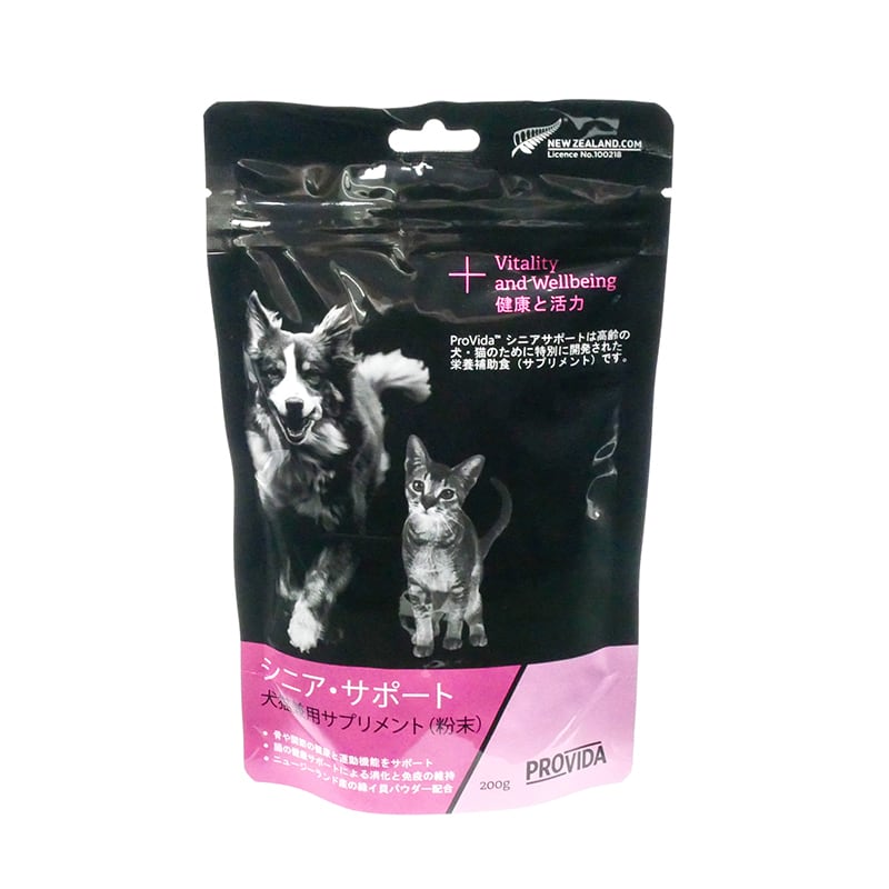 ProVida シニア・サポートは、高齢の犬や猫の栄養サポートのために特別に作られた、毎日与えられるパウダータイプのサプリメントです。年齢を重ねた愛犬・愛猫の生活をサポートするために、最高品質の成分が特別な配合比でブレンドされています。